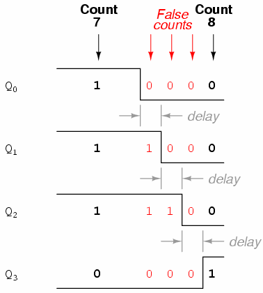 Another disadvantage of the asynchronous, or ripple, counter circuit is