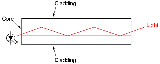 An optical fiber is composed of two layers of ultra-pure glass, each