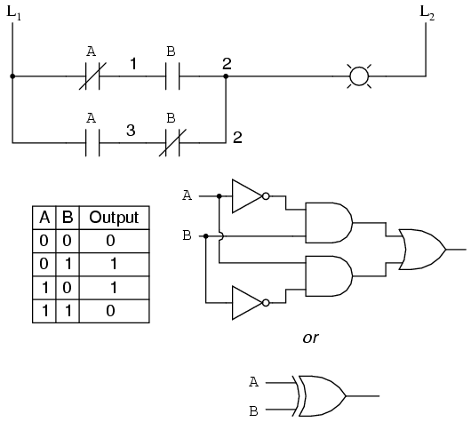 Exclusive-OR function built from a combination of AND, OR, and inverter