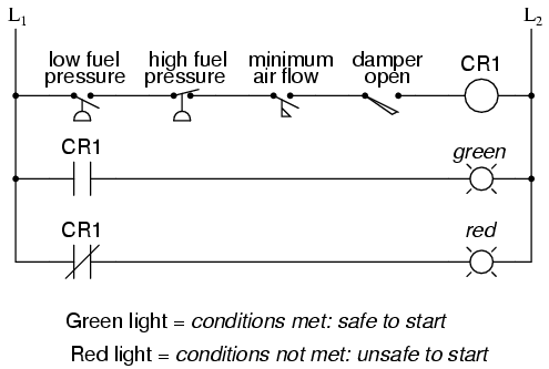 green lamp would be energized: usually a control relay or fuel valve