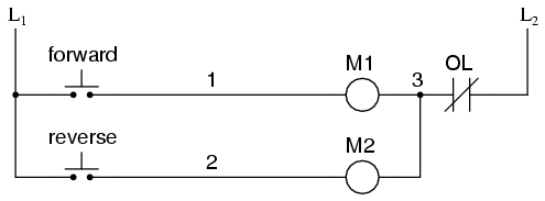 we don't want the forward and reverse contactors energized simultaneously:
