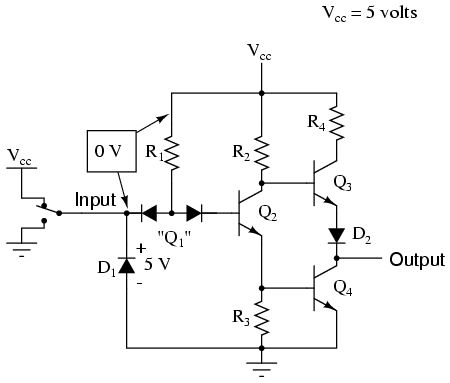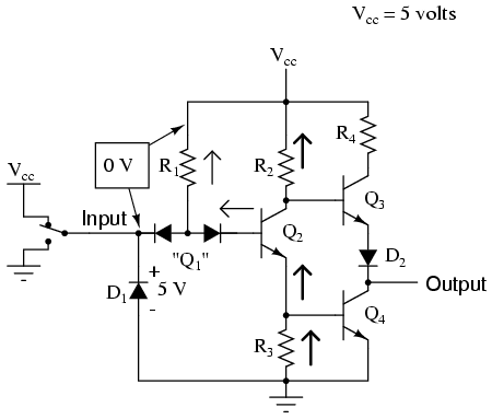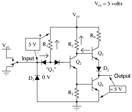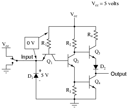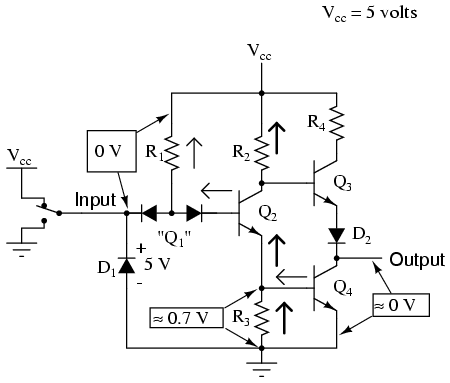 ground) of almost 0 volts, or a binary "0" ("low") logic level. Due to the