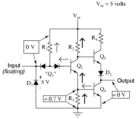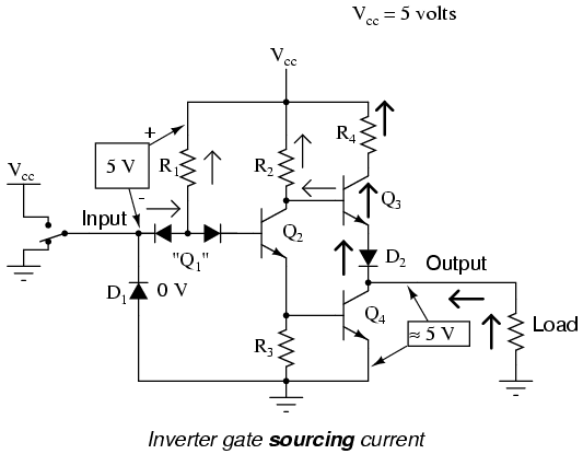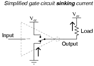 Conversely, when a gate circuit is outputting a "low" logic level to a