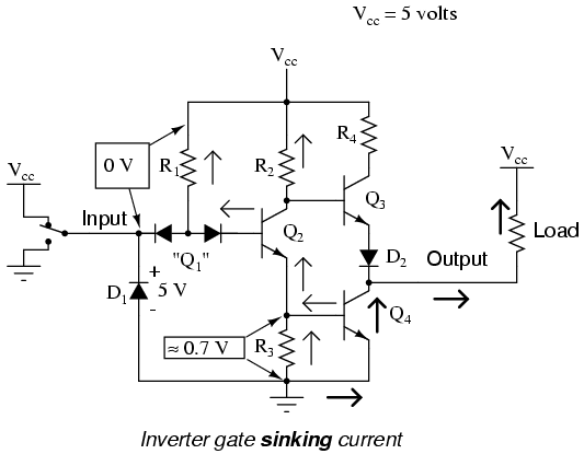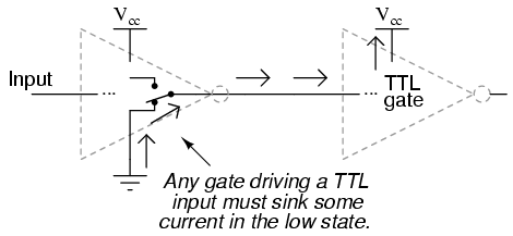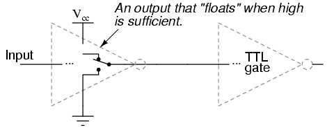 output driving a TTL input need only sink current to provide a "0" or "low"