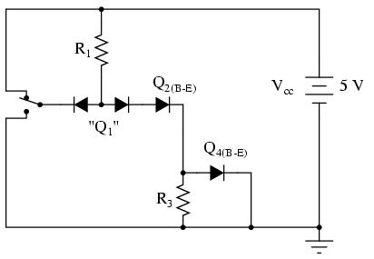 a double-throw switch, capable of connecting the output terminal either to Vcc