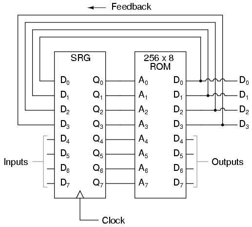 to the ROM, awaiting the signal of the next clock pulse to be fed back to