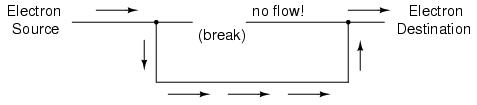 once-continuous path has now been broken, and electrons