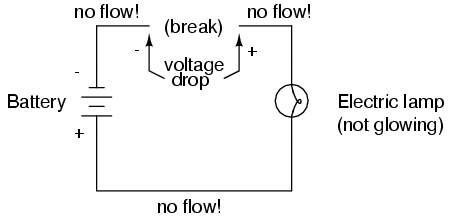 continuity of the circuit is broken at any point, electron