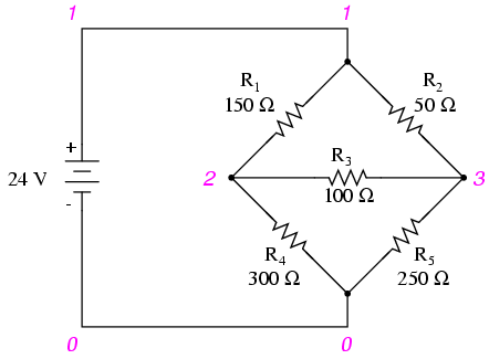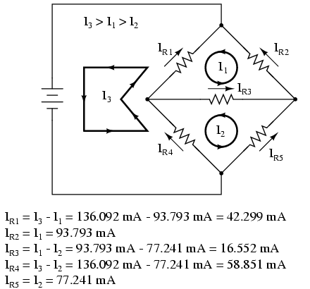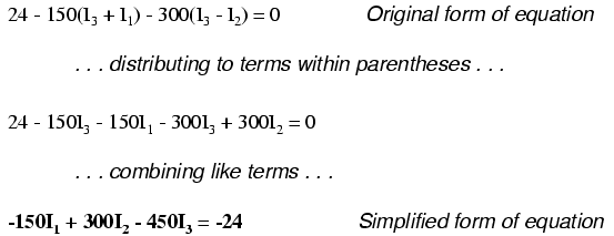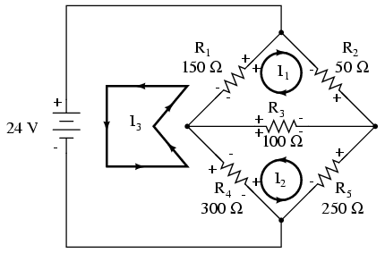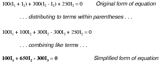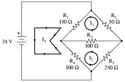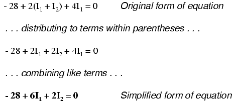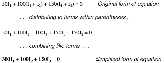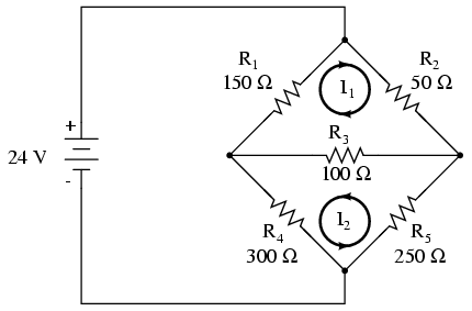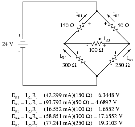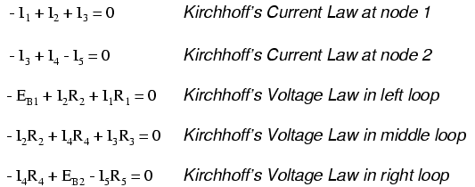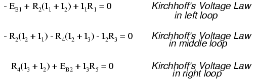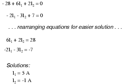 simultaneous equations, Kirchhoff's Voltage Law, and Ohm's