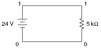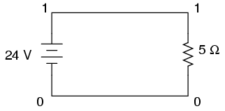 voltage of 24 volts. The line "r1 1 0 5" describes
