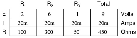 the circuit's total current. Total voltage -- being shared
