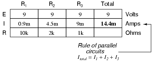 Total current in a parallel circuit is