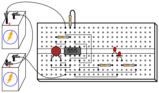 alternately charging and discharging a capacitor. The 555