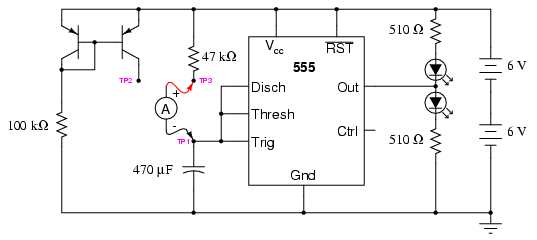 ammeter between TP1 and TP2 (constant-current mode). Measure
