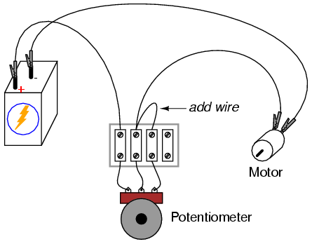 potentiometer, and see how motor speed may be controlled by