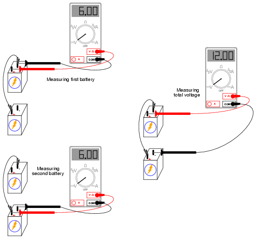 respective voltages add. Measure the voltage across each