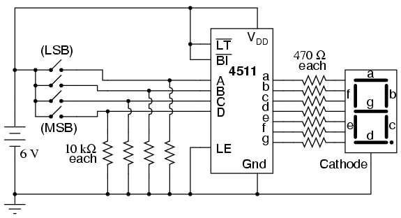 on the 7-segment LED display. The BCD inputs are designated