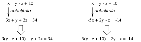 from three variables in three equations to two variables in