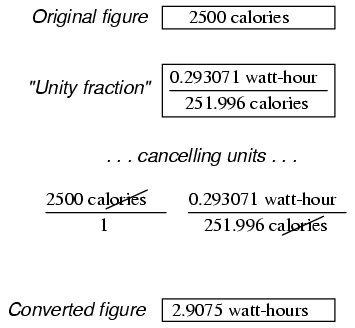 (0.293071 w-hr / 251.996 cal) = 2.9075 watt-hours.