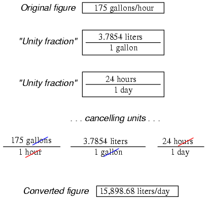 gallon) and a hours-to-days unity fraction of (24 hours / 1
