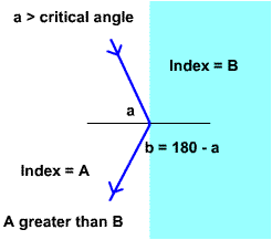 Internal reflection in glass of water (neglecting refraction from the glass)
