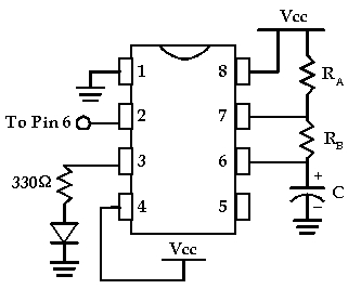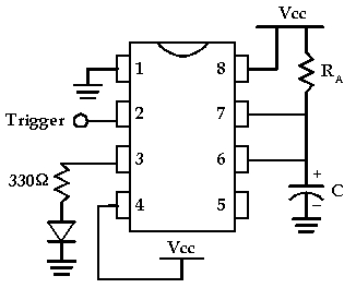 this triggers Pin 2 causing Pin 3 to go to Vcc